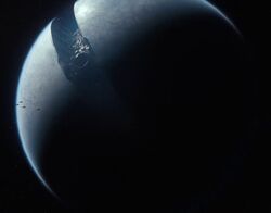 Near the conclusion of 1 BBY, the Rebel Alliance initiated an attack on Scarif, a planet under Imperial shield protection, aiming to procure the plans for the Death Star battle station. In the course of this battle, the Sphyrna-class Hammerhead corvette named Lightmaker propelled the incapacitated Star Destroyer Persecutor into Scarif's Shield Gate, consequently impacting the planetary shield itself. This action generated an opening, facilitating the transmission of the Death Star plans to the Rebel Fleet. Mere seconds afterward, the Death Star itself materialized, discharging a low-intensity superlaser blast onto the Imperial installation below, thereby completely obliterating the planetary shield.