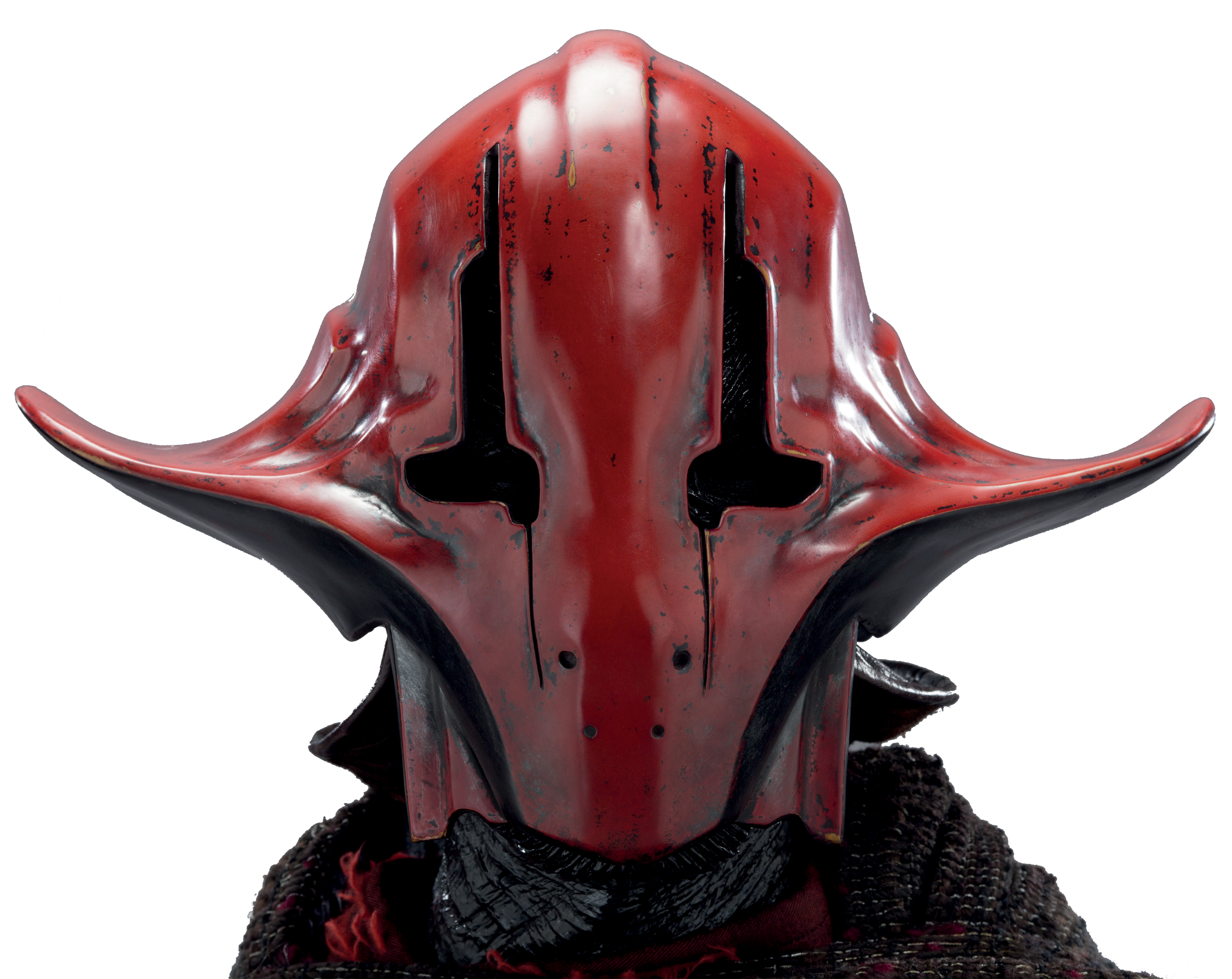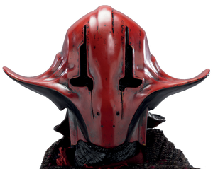 Sidon Ithano wearing a red Kaleesh mask made of plasteel