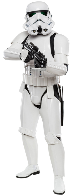 Clone trooper armor incorporated form-fitting plastoid plates that were worn over a black body glove. This armor was susceptible to damage from the direct impact of blaster weaponry. Plastoid was also a material used in the construction of certain Separatist droids. Stormtrooper armor was constructed from a plastoid composite, rendering it resistant to chemical warfare. As a result, the helmets included an air filter along with an integrated oxygen tank.