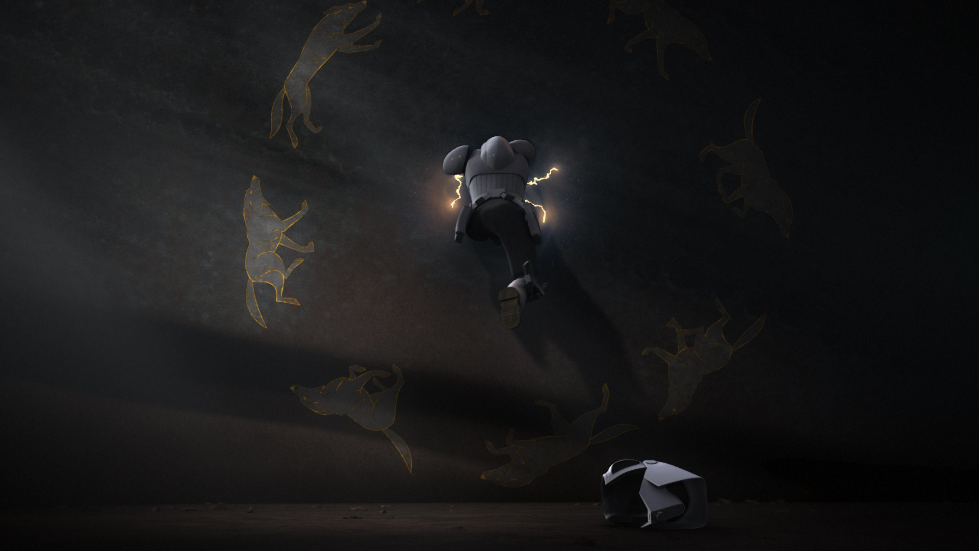 Bridger soon discovered his ability to interact with these portals, leading him to rescue Ahsoka by pulling her into the World Between Worlds. Ezra's intervention weakened the barrier between dimensions, enabling Sidious from the Ceremonial chamber within Inquisitorius Headquarters on Coruscant to glimpse into it with the aid of Sith magic. However, because he had ensnared Ezra with a fiery lasso, he was unable to physically enter and required Ezra's assistance to fully harness the dimension's power. He was prevented from doing so by Ahsoka Tano's lightsabers. After fending off Sidious' attempts to capture them, both Ezra and Ahsoka returned through their respective portals, with Ahsoka returning to Malachor and Ezra to Lothal.