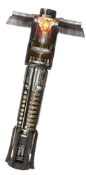 The lightsaber wielded by Kylo Ren uses a diatium power cell to function.