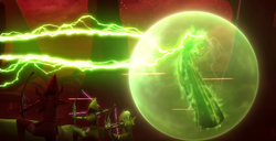 Mother Talzin, a Dathomirian Nightsister, demonstrated a variation of the protection bubble during the Battle of Dathomir. In line with other Nightsister magicks, the shield exhibited a green hue. It served to deflect blaster bolts from approaching battle droids and was employed in conjunction with Force lightning.