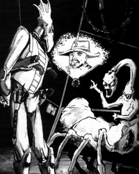Rakaan crime boss Lud Chud with an alien bounty hunter.