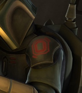 During the time of the Clone Wars, the Mandalorian warriors belonging to the Death Watch terrorist organization utilized a rank insignia for identification. These red symbols were displayed on the left shoulder armor plate. The quantity of corner lines on the symbol was indicative of a specific rank.