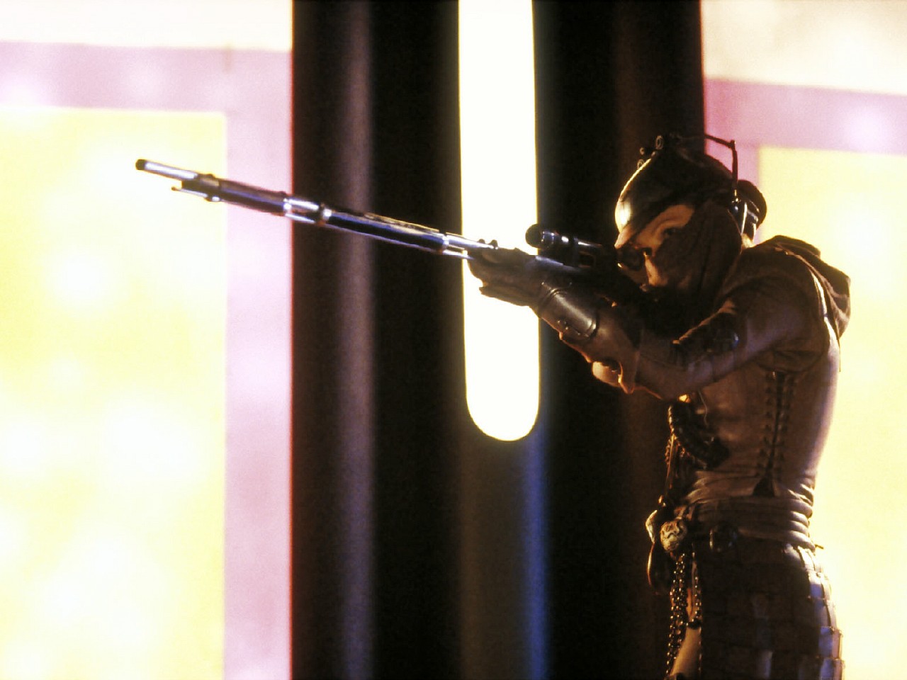 Zam Wesell is pictured taking aim with her KiSteer 1284 projectile rifle