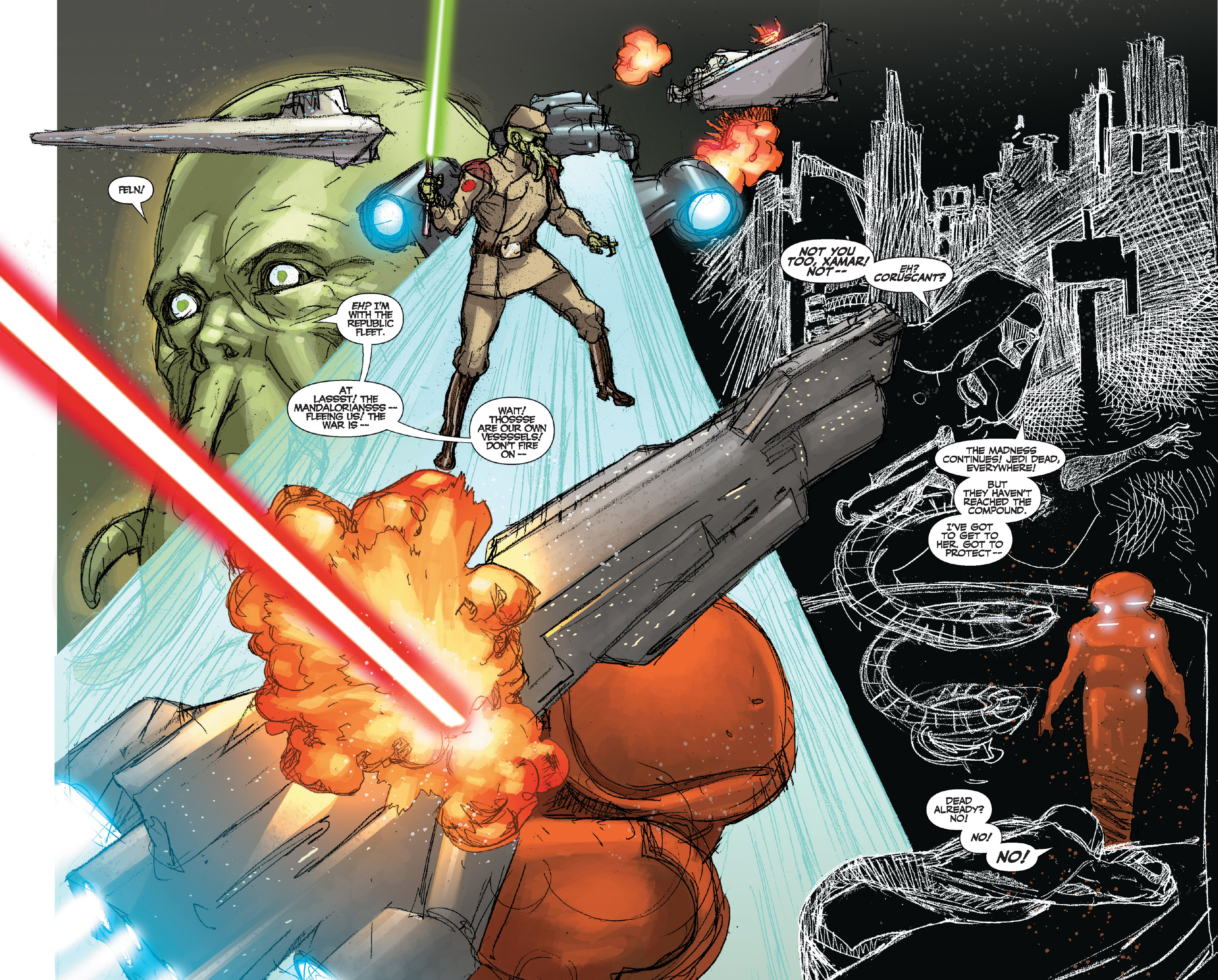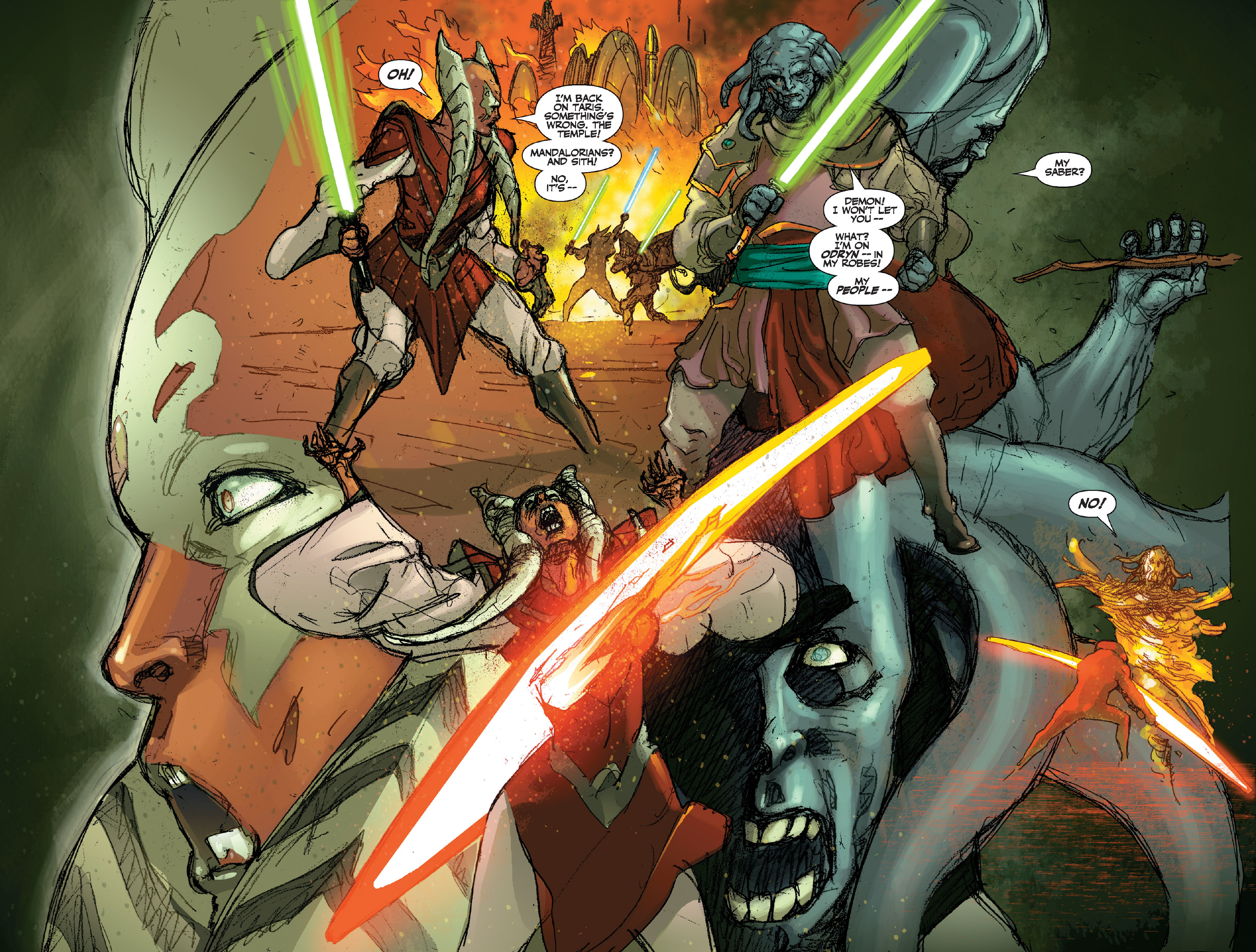 The prophecies regarding the deaths of the first two masters came to pass in a direct manner. Raana found herself trapped by falling debris. In an attempt to free herself, she ignited her lightsaber, but a crimelord misinterpreted this as an attack on his friend and detonated the tower beneath her. Feln destroyed a holy place along with the nearby village, and was subsequently murdered by his own subjects. When Admiral Saul Karath requested Xamar to join his blockade of Coruscant against the lone survivor of the Padawan Massacre, Xamar feared his own prophesied doom and attempted to avert it. However, Xamar was ultimately killed by Admiral Karath's ships while assaulting the Draay Estate, fulfilling the prophecy due to the fleet's slave circuits being manipulated by Haazen.
