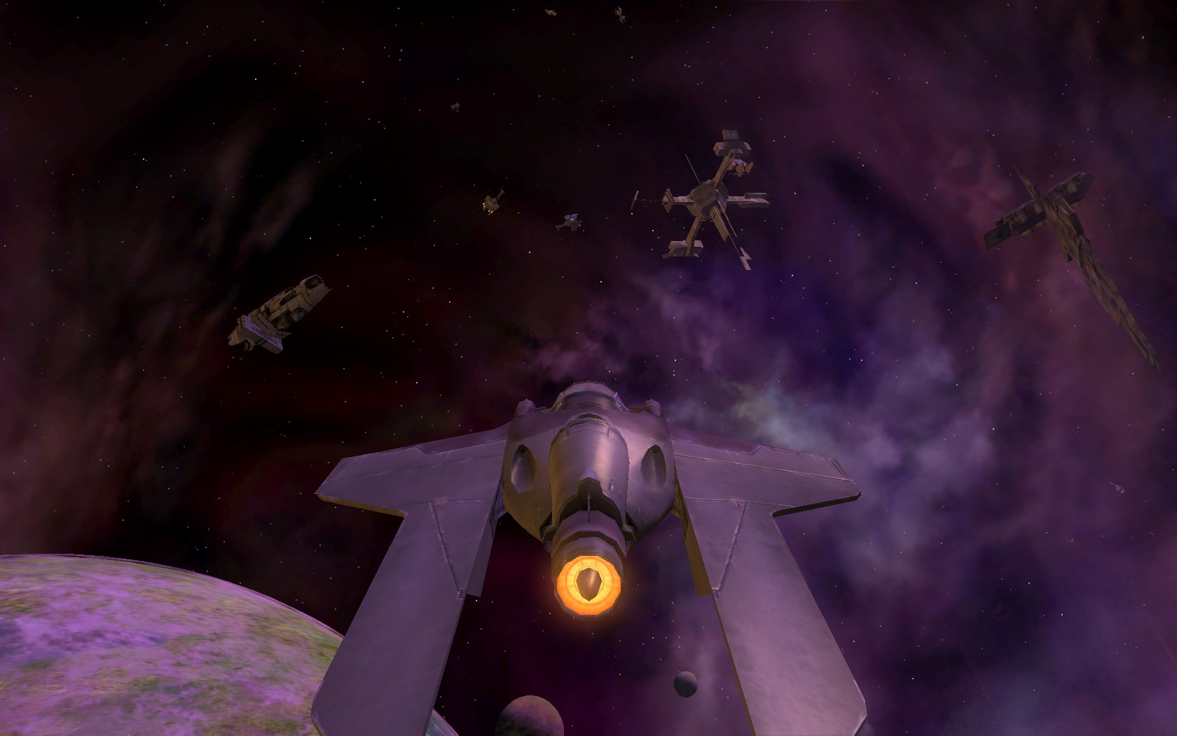 A M3-A Scyk fighter is seen approaching the Scarlet Dawn quadrant.