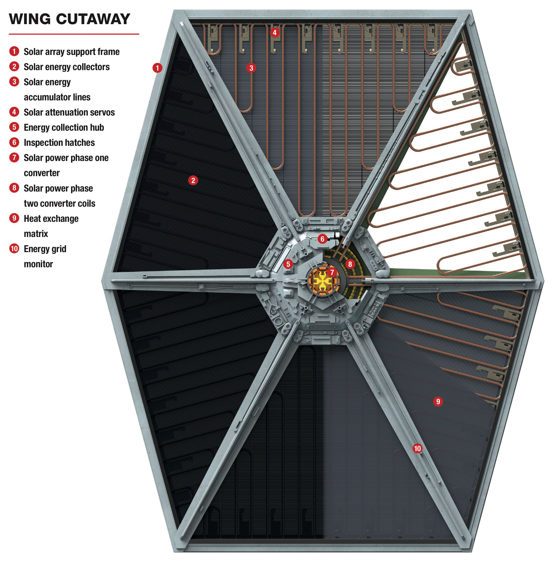 A diagram of the solar collectors on a TIE fighter wing