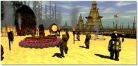 The Southern Ewok Lake Village appeared as a location within the 2003 video game Star Wars Galaxies. This game, a massively multiplayer online roleplaying game, was created by Sony Online Entertainment and distributed by LucasArts. The game was shut down on December 15, 2011. While the game featured two Ewok stilt villages, both simply labeled "Ewok Lake Village," the game's files and source data identified the southern village more specifically as the Gondula Ewok Fishing Village.
