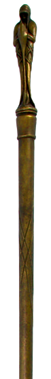 The Speaker's staff was a tall staff constructed from wood, used by the Senate's Vice Chair within the Galactic Republic. Carved, intersecting lines adorned its entire length, and a golden likeness of Sistros Nevet, one of the Four Sages of Dwartii, served as its finial.