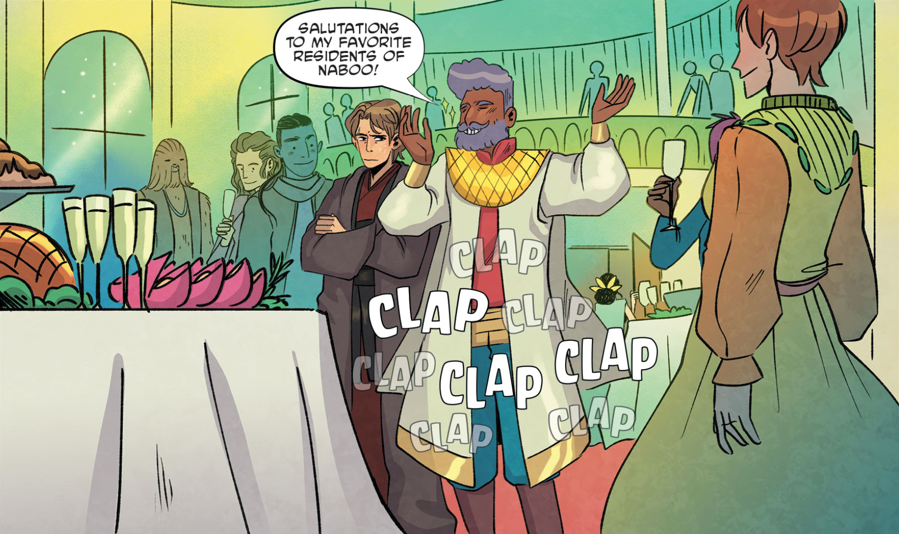 During the time of the Clone Wars, Senator Padmé Amidala made an appearance at the gala, and Anakin Skywalker was there as her assigned security detail.