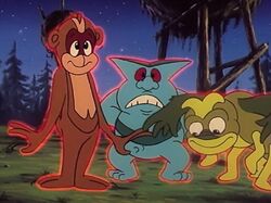 The totem pole disguise for the Totem slaves was made possible by the magical ring wielded by the Totem Master; during the night, he would bring them back to life and exploit them to steal from Endor's residents. The group started with only three members: a blue biped, a marsupial ape, and a green arthropod. However, the Totem Master could expand their numbers by using his ring to hypnotize others. Latara and Teebo, two young Ewoks, were enslaved in this way, which increased the totem pole's size.