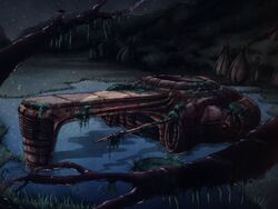 Around 15 BBY, Gir Kybo Ren-Cha, a pirate captain, utilized a grounded freighter located on the bog moon of Bogden as a temporary prison. This vessel acted as a short-term headquarters for Ren-Cha and his Pirates of Tarnoonga during their abduction of Princess Gerin, who was the daughter of Lord Malameu Toda, the warrior-chieftain ruling over Tammuz-an's Outer Territories. Subsequently, Toda, in conjunction with King Mon Julpa and a squadron of soldiers, launched an assault on this base.