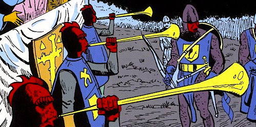 Trumpets are blown by Serps to signal the commencement of the Doom-Jousts.