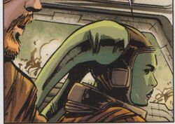 Around 139 ABY, a Twi'lek with green skin and a pair of lekkus served as the pilot of the starship belonging to the spacer named Ramid. In that year, this pilot was involved in the abduction of Ania Solo, who was Ramid's former lover and was being hunted by the Galactic Federation Triumvirate for the murder of Imperial Knight Teemen Alton. After Solo overcame Ramid's Klatooinian crew mate, the pilot used a blaster rifle to disarm Ania, knocking her rod from her grasp. Subsequently, Ramid escorted Ania back to her confinement.