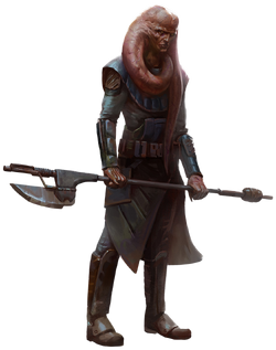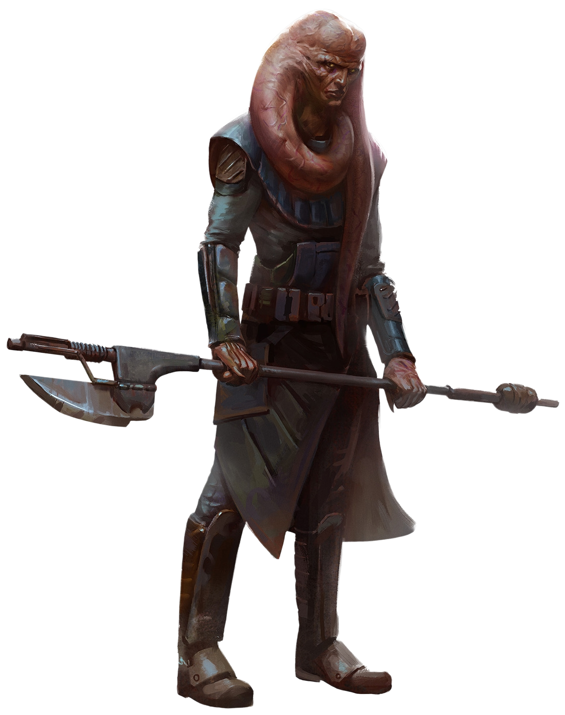 A Twi'lek is depicted here, brandishing a vibro-ax.