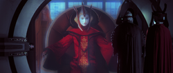 Nute Gunray and Rune Haako are shown communicating with Padmé Amidala using a circular viewscreen.