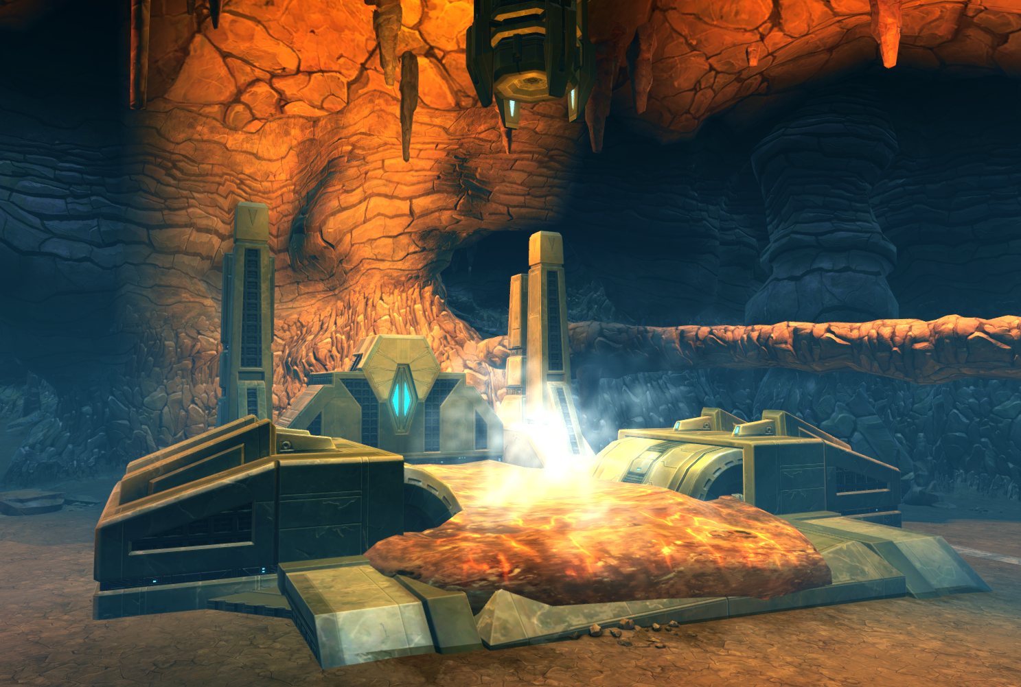 During the Galactic War, the Sith Empire inadvertently freed the Esh-kha during their attack on Belsavis. After escaping their confinement, the Esh-kha plotted to release the World Razer. A Republic strike team, tasked with thwarting their plans, learned from Failsafe, an imprisoned Rakata intelligence, about a failsafe mechanism above the World Razer's prison known as the Burning Way. This mechanism would unleash molten liquid onto its cell, effectively resealing it. Following the strike team's elimination of the Esh-kha leader, Gore Claw, the World Razer attempted to negotiate its freedom, asserting that it would eventually escape regardless and offering power in exchange for release. The strike team rejected the offer and activated the Burning Way, thus re-imprisoning the World Razer.